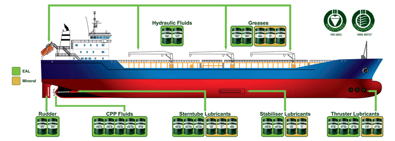 Vickers Oils has a range of environmentally acceptable lubricants (EALs) Since 2002 and mineral oil based lubricants designed to provide excellent lubrication of the sterntube bearings.